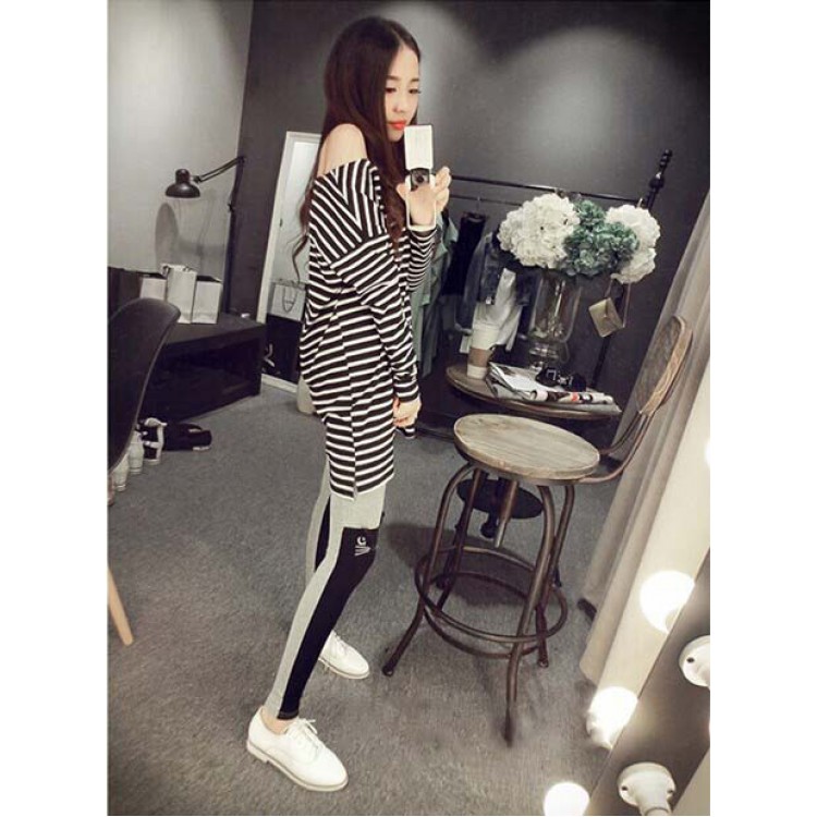 J41563 Joker lässiges gestreiftes Langarm-T-Shirt mit Rundhalsausschnitt Menge